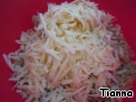 Бананы запечь в кожуре (я для этого использовала микроволновку) и размять в пюре. Добавить сыр и перемешать.