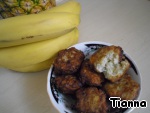 А эти пончики приготовлены с меньшим количеством муки (3 ст. ложки). Получаются банановые оладушки.:-)