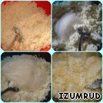 Взбить яйца с оставшимся сахаром; добавить к смеси из творога и кускуса и хорошо перемешать.
