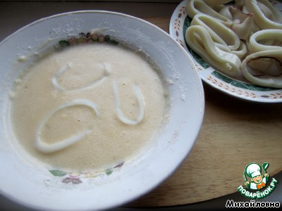 Кальмары обмакнуть в кляр. -