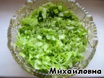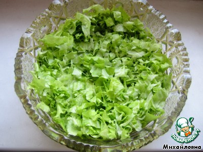 Первый слой - зелёный салат. -