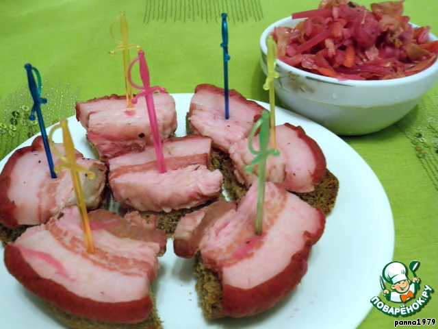 Маринованный шпик (сало) и салат