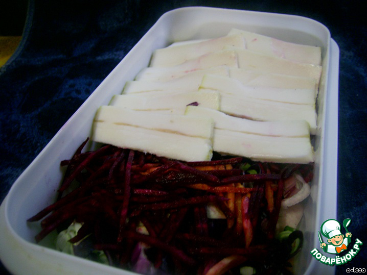 Рецепт «Маринованный шпик (сало) и салат»: