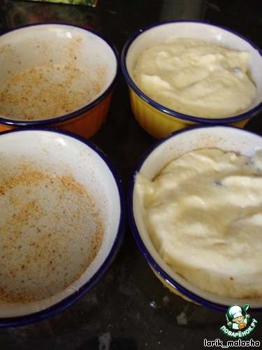 Смазать формы растительным маслом. Если хотите подавать пудинги, сняв их из формочек, то нужно присыпать формы сухарями.