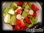 Через полчаса баклажан нужно тщательно вымыть от соли и переместить к остальным овощам мариноваться. -