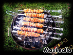 По истечении времени курицу нанизать на шампура. Оставшийся маринад не выливать - им будет поливаться шашлык во время жарки. Жарить на углях, время от времени переворачивая каждый шампур и поливая маринадом.