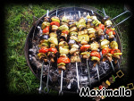 Предлагаю вашему вниманию два обалденно вкусных шашлычка (можно сказать, блюдо 2 -в-1 !), один из которых мясной, а второй - овощной и служит первому гарниром-салатом! Жареное на углях куриное филе, предварительно замаринованное в медово-томатно-лимонном маринаде, как нельзя лучше сочетается с шашлыком из самых разных овощей в маринаде из зелени и лимона! Филе получается очень нежным и необычайно сочным, яркого красно-оранжевого цвета, а овощи румяными и ароматными! Все это подчеркивается нотками душистих специй и огромной ЛЮБОВЬЮ К ЛЕТНЕМУ ШАШЛЫКУ!!!