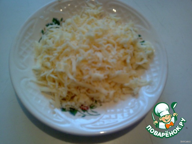 • Сыр натереть на терке, чеснок выдавить через чесночницу, смешать с сыром.