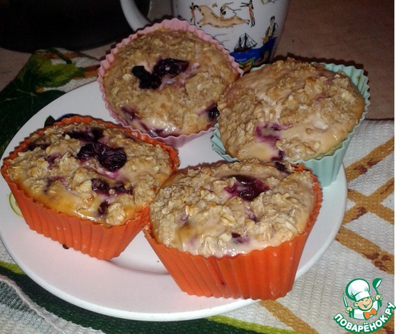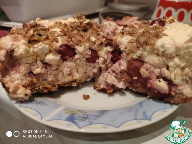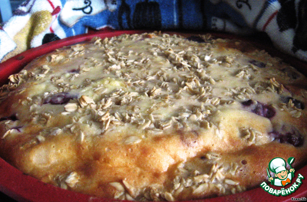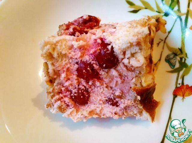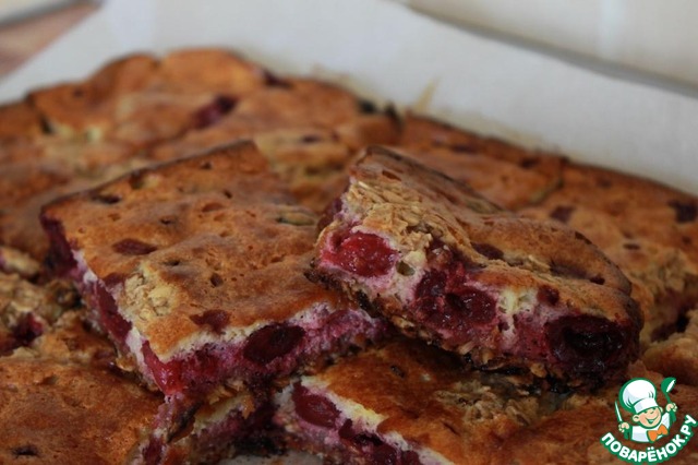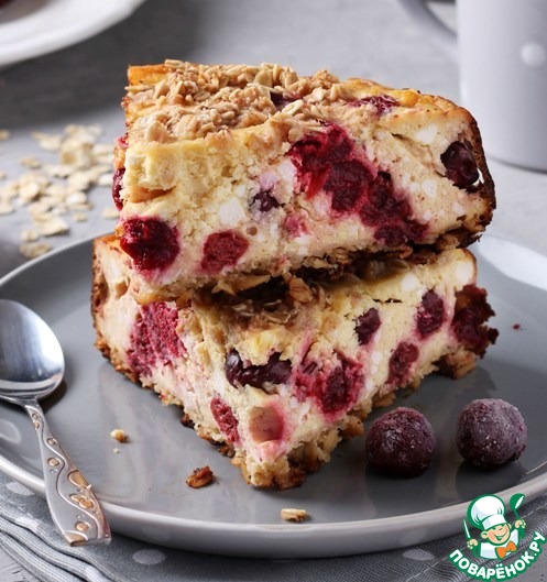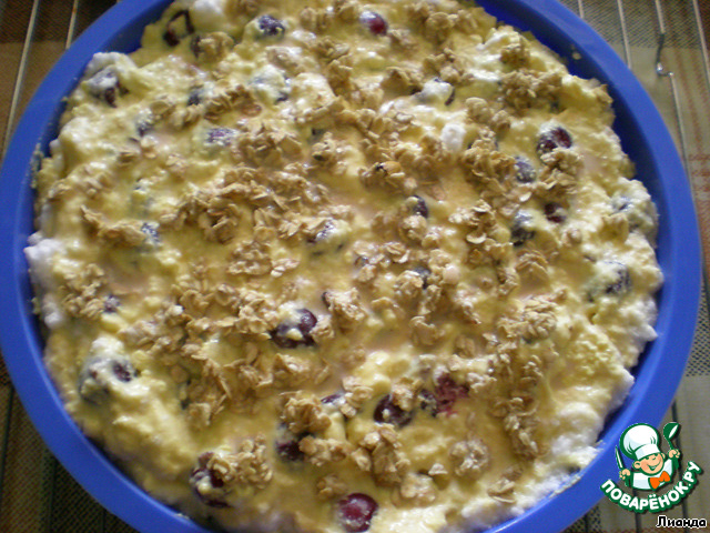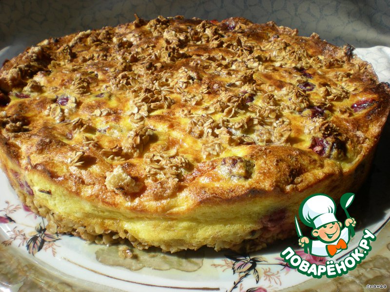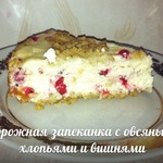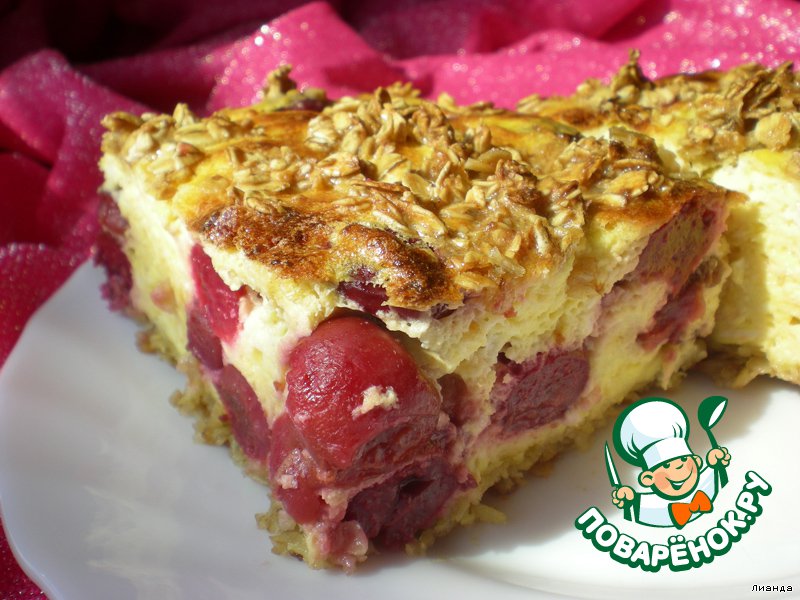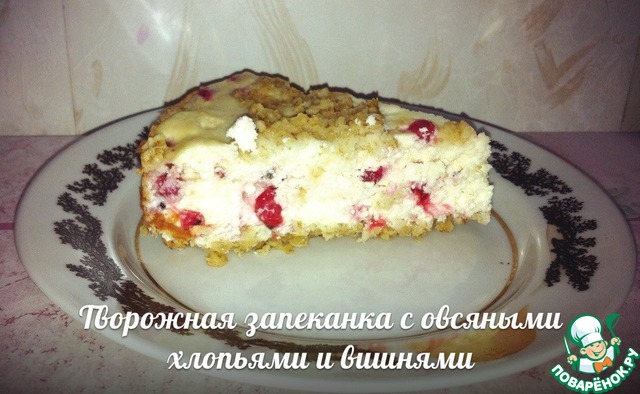 Рецепт «Творожная запеканка с овсянкой и вишней»: