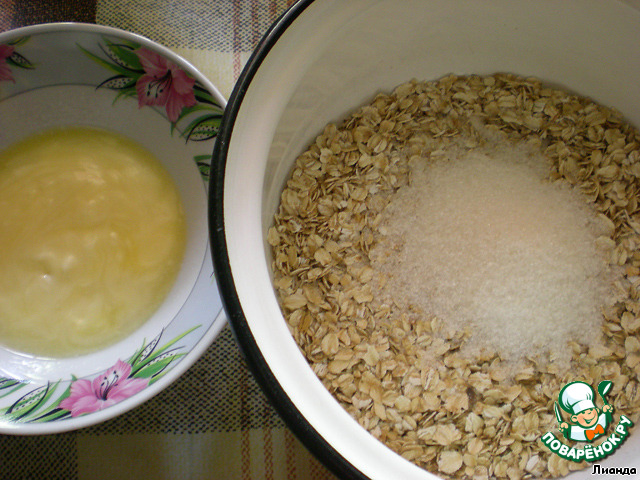 - Хлопья овсяные (в основу - 100 г; в штрейзель - 20 г) — 120 г