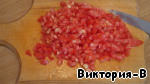 В это время нарезаем кубиками мякоть баклажана
