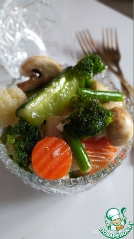 Выкладываем подготовленные овощи в ёмкость соответствующего