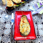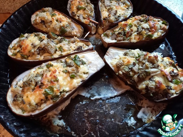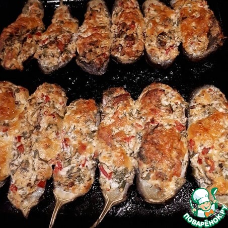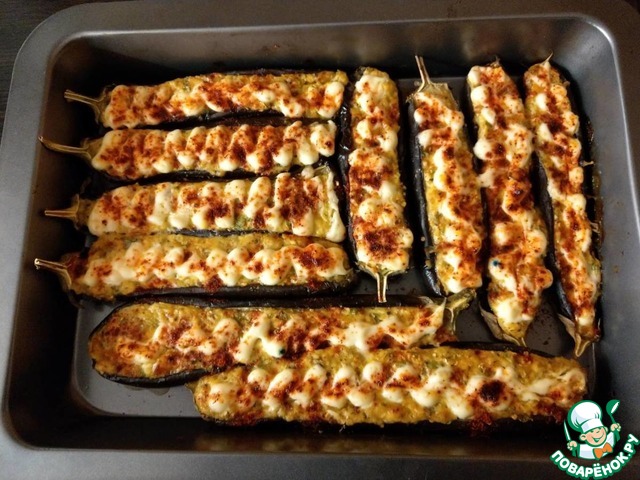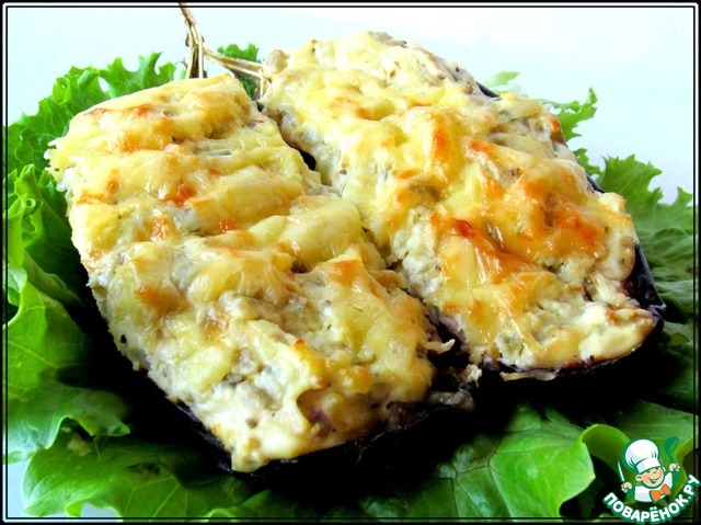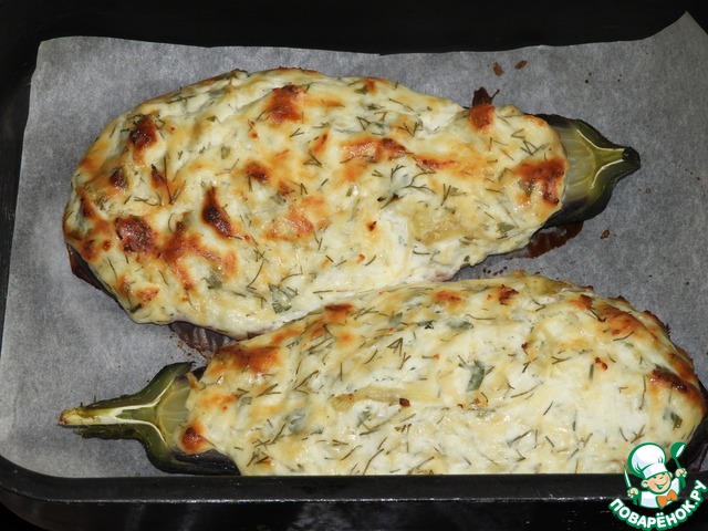 Начинить половинки баклажанов сырной начинкой и отправить в разогретую до 180 градусов духовку на 30 минут. Приятного аппетита!