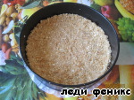 Смешать измельченное печенье, сахар и масло. Выложить смесь в разъемную форму. Сделать бортики.