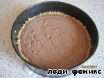 Вылить в форму с печеньем, сначала шоколадную смесь.