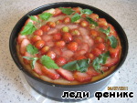 Украсить клубникой. Залить в несколько приемов желе. Желе приготовить по инструкции на упаковке. Взять поменьше воды.