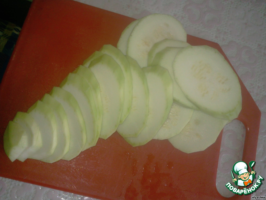 Порезать кабачок кольцами.