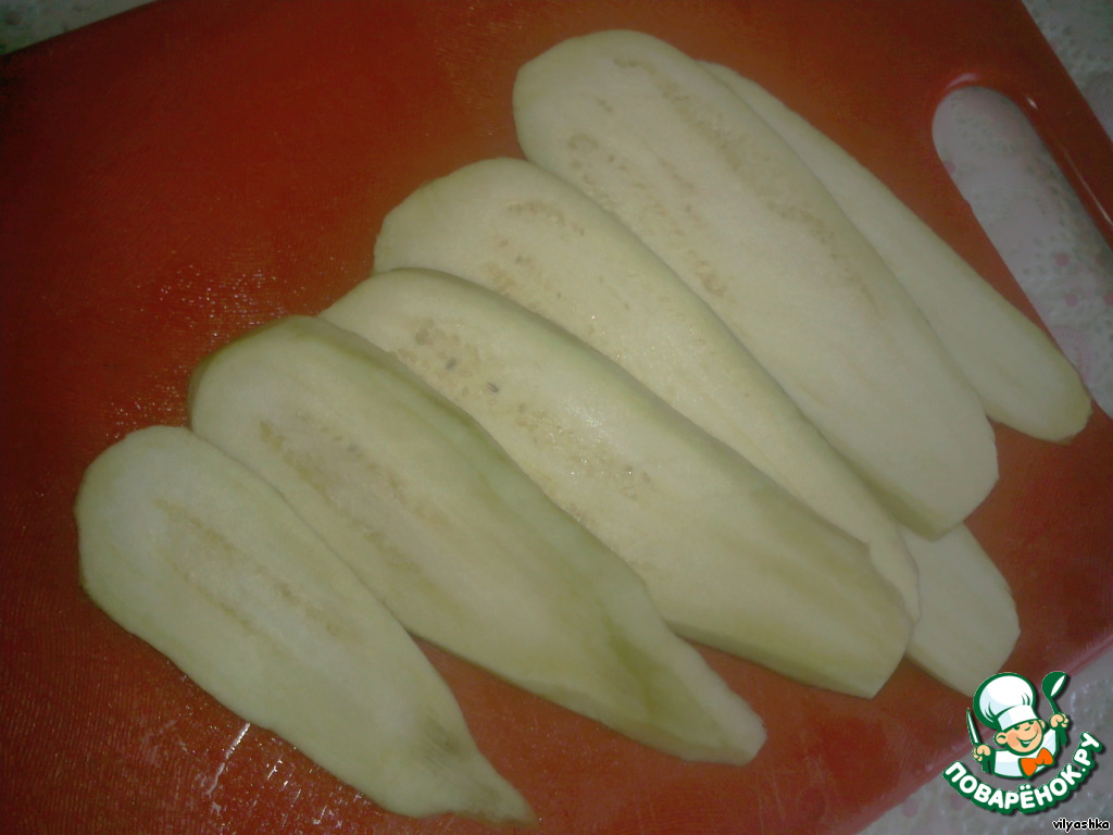 Баклажаны почистить, порезать вдоль и обжарить с двух сторон, как кабачки.