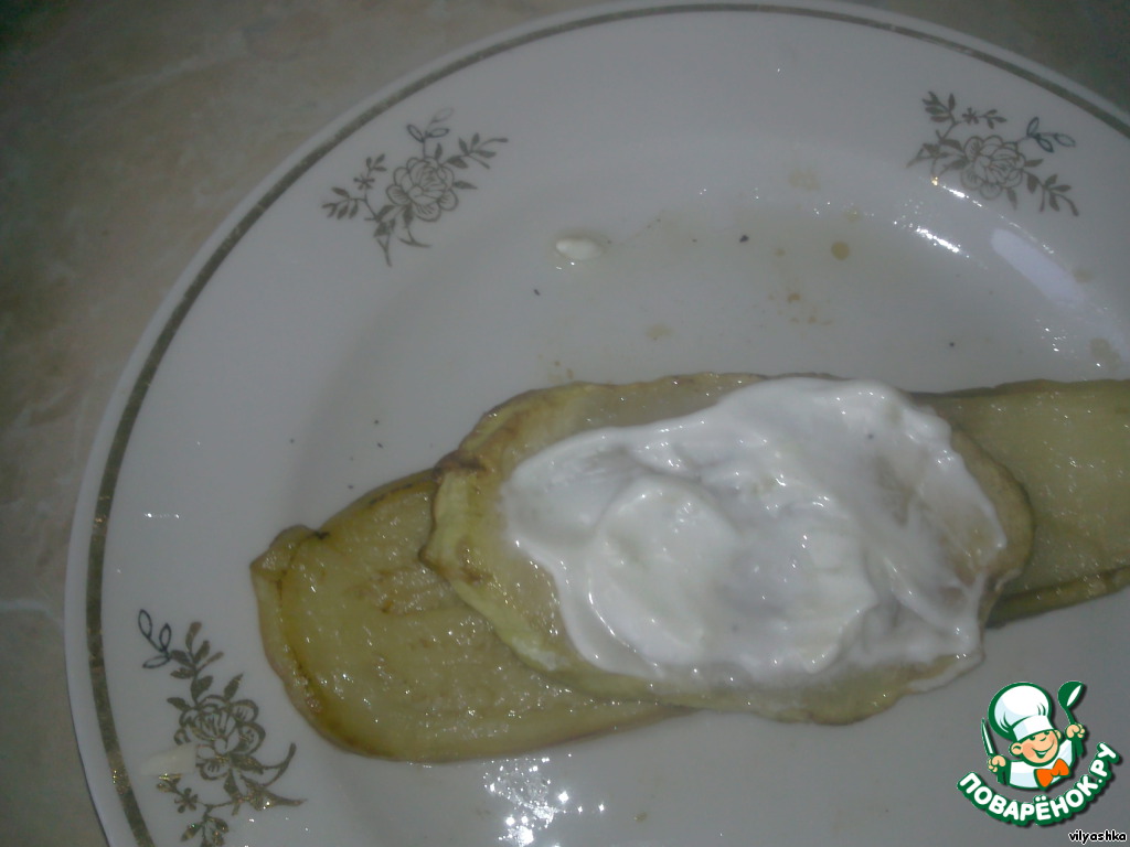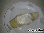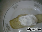 Смазать майонезом с чесноком.