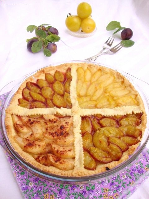 [+5]Отличный тарт, вкусный, нам понравился. В начинке использовала грушу, нектарины, сливы и абрикосы. Форма у меня прямоугольная, так что пришлось последовательно выкладывать... Ну и снять красиво не вышло, времени не было, пришлось просто щелкнуть для отчета, уж извиняй) Спасибо за рецепт, солнце!