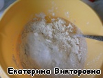 Добавляем растопленный маргарин, размешиваем, добавляем муку с погашенной уксусом содой.