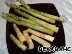 Спаржу подготовить, отрезав нижнюю белую часть.