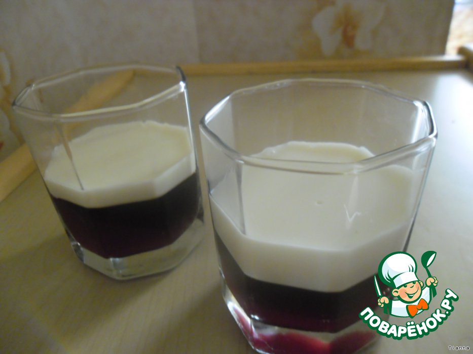 Стоило бы чуть изменить название блюда- у Вас желе получается. И еще - если делать в той последовательности, как Вы предлагаете, стоило сок взять светлый- смотрелось бы лучше и интереснее, а то сок и кофен сливаются в одну массу. И можно увеличить количество слоев- полосатый десерт.