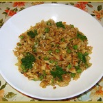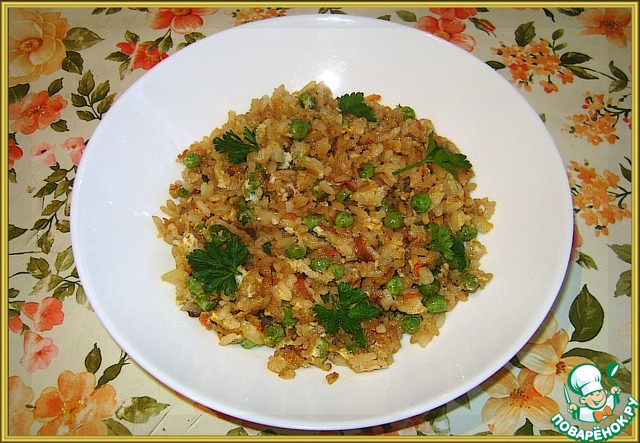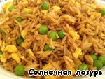 Рецепт из китайской кухни. Особенно будет удобен, если со вчерашнего дня в холодильнике осталось немного сваренного риса. Выкидывать жалко, а есть в таком виде скучно. Спасем ситуацию! Время подготовки - 5 - 10 минут. Время самой готовки еще минут 10.
