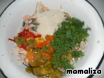 - Перец болгарский (зеленый измельченный - 1/4 стак.; маринованный измельченный - 2 ст.л.) — 1/4 стак.