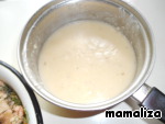 Бульон процедить и варить, выпаривая, до объема 1,5 стакана. Приготовить густой соус из сливочного масла, муки и процеженного бульона. Добавить соль, перец и шалфей.