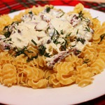 Ингредиенты для «Лумакони в сливочном соусе с беконом и травами»: