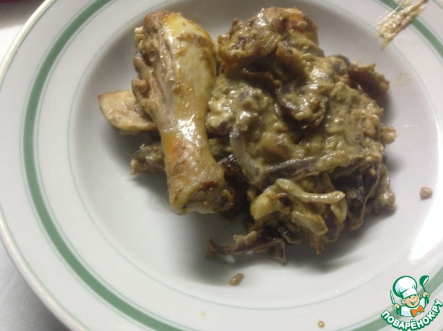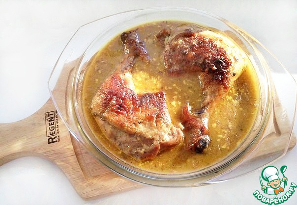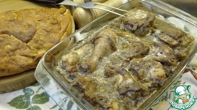 Обмазанную курицу оставляем мариноваться на полчаса. -
