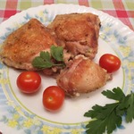 Берём любые части курицы (хоть саму курицу разделать, хоть бёдра, голени, кроме крыльев), у меня были окорочка, я их разделила на голени и бёдра, вымыла под проточной водой, и высушила кухонной бумажной салфеткой.
