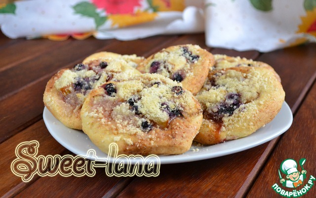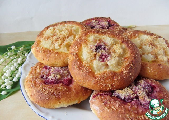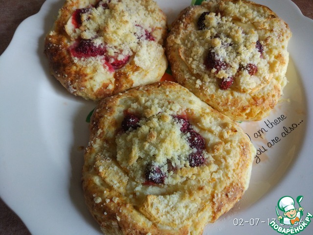 Рецепт «Ягодно-фруктовые ватрушки с карамельной крошкой»: