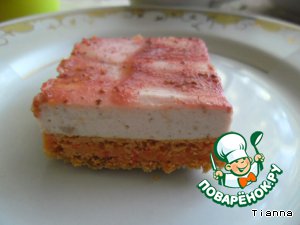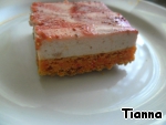 После этого смазать поверхность оставленным клубничным пюре и нарезать на пирожные.