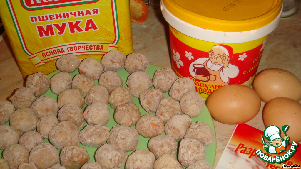 - Фрикадельки (полуфабрикаты, замороженные) — 500 г