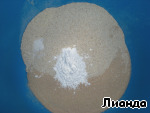 Смешать овсяную и гречневую муку, разрыхлитель и щепотку соли.