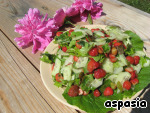 Июль... Макушка лета. На даче - прекрасная зелень, сочные ягоды. Рядом с книжкой - пушистый газон. На еду смотреть не хочется. А вот салатик можно попробовать. Новенький, только что с грядки!