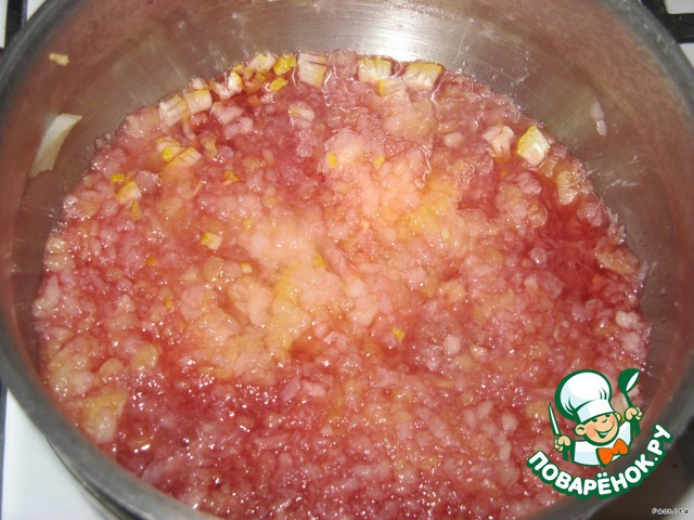 Протереть, добавить соль, сахар, цедру лимона, вино и проварить 2-3 минуты, добавить чеснок.