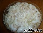 Куриную грудку отварить и разделить на волокна. Лук нарезать полукольцами. Залить лук и курицу разбавленным в пропорции 1:1 яблочным уксусом. Оставить на 1-1,5 часа.