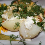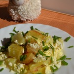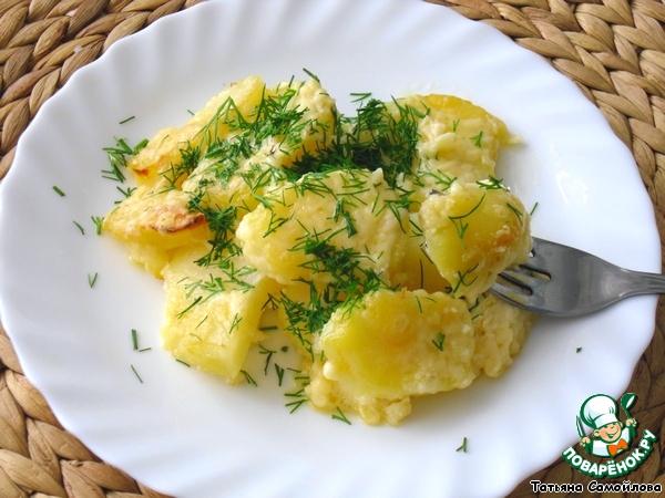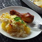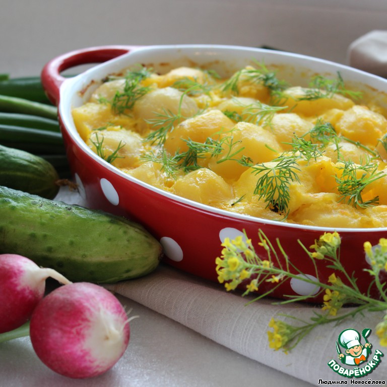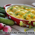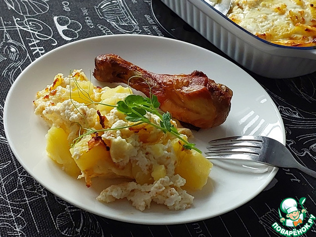 Готовила строго по рецепту с молодым картофелем, всем гостям блюдо понравилось. Очень удивлялись, что картофель так хорошо сочетается с творогом.