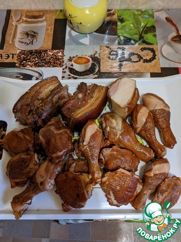 Куриные четверти, копченные в домашних условиях.