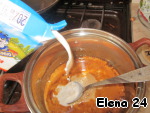 Перемешиваем, чтобы масса была однородной, затем вливаем оставшуюся половину банки сгущенки.