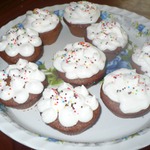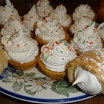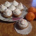 Я наполнила их абрикосовым джемом и сверху украсила кремом и сахарным декором.