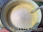 Также добавить сахар, соду (гашеную уксусом), ванильный сахар и перемешать.