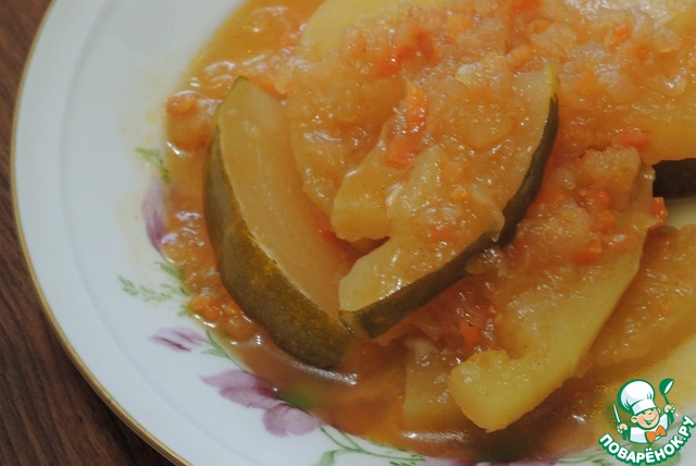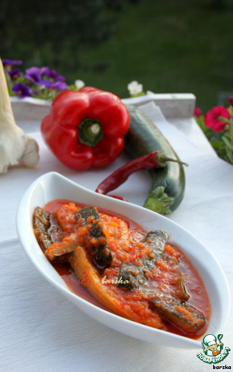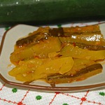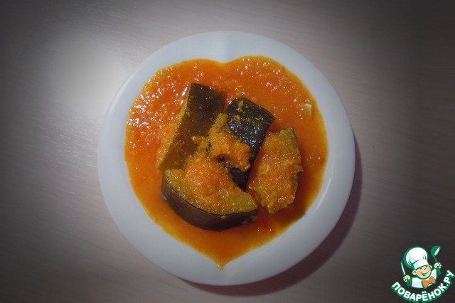 Кабачки в изумительной подливке. Насколько мне известно, "Татарская песня" готовится из баклажанов (вернее, мы всегда так готовим). Но в этом году я решила изобразить тот же рецепт, но в новом виде, так сказать.