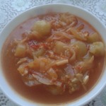 Сегодня сделала с баклажанами и перцем. Правда добавила воды к томатной пасте(с помидорками уже туговато). Очень вкусненько получилось.