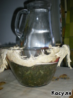 Помятые листья помещаем в подходящую посуду, накрываем влажным полотенцем и ставим сверху гнет. Оставляем листья дозревать на сутки.