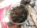 По прошествии суток листья либо прокручиваем через мясорубку, получая гранулированный чай, либо мелко режем и получаем крупно листовой. Хочу заметить, что определить, что чай "созрел" можно по изменившемуся запаху, он стал цветочно-фруктовым, мне показалась, что даже немного цитрусовым...