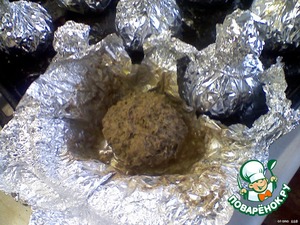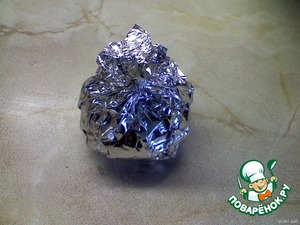 Заворачиваем шарик в фольгу, как мешок, то есть собираем фольгу наверх.